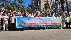 ভোলায় পৌরসভার গাড়ীতে আগুন ও হামলাকারী আসামীদের গ্রেফতারের দাবীতে বিক্ষোভ
