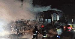 যমুনাসেতু-ঢাকা মহাসড়কে চলন্ত বাহী বাসে আগুন
