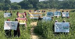 নকলায় কৃষি জমি দিয়ে খাল খনন বন্ধের প্রতিবাদে মানববন্ধন