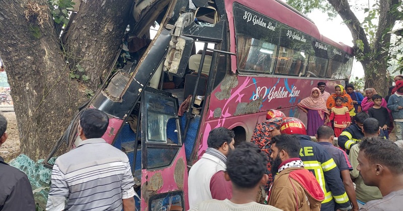 ঝিকরগাছা থানার ওসি বাবলুর রহমান জানান,ঢাকা থেকে ছেড়ে আসা সাতক্ষীরাগামী গোল্ডেন লাইন পরিবহন নামের একটি এসি বাস বেপরোয়া গতিতে আসছিল। গাজীর দরগাহ নামক স্থানে পৌঁছালে এক মোটরসাইকেল আরোহীকে পাশ কাটাতে গিয়ে পথচারী বুলু মিয়াকে চাপা দিয়ে বাসটি সড়কের পাশে গাছের সাথে ধাক্কা দেয়। এতে বাসের সামনের অংশ দুমড়ে মুচড়ে যায়।