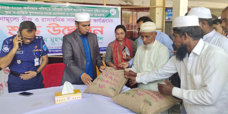 আজ সোমবার দুপুরে শিল্পকলা চত্ত্বরে উপজেলা কৃষি অফিসের আয়োজনে জেলা প্রশাসক মুহম্মদ কামরুজ্জামান প্রধান অতিথি হিসেবে উপস্থিত থেকে ক্ষুদ্র ও প্রাান্তিক কৃষকদের মাঝে এসব বীজ ও রাসায়নিক সার বিতরণ করেন।