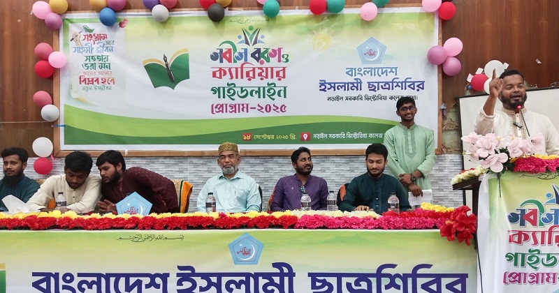 নড়াইলে নবীন বরণ ক্যারিয়ার গাইড প্রোগ্রাম ২০২৫ অনুষ্ঠিত হয়েছে। বাংলাদেশ ইসলামী ছাত্রশিবির নড়াইল সরকারি ভিক্টোরিয়া কলেজ শাখার আয়োজনে আজ বৃহস্পতিবার (১৮ সেপ্টেম্বর) নড়াইল সরকারি ভিক্টোরিয়া কলেজের মাল্টিপারপাস হল রুম এই অনুষ্ঠান অনুষ্ঠিত হয়।
