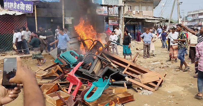 এদিকে হামলার খবর পেয়ে হাসপাতাল বাজার থেকে উপজেলা বিএনপির সাবেক সাধারণ সম্পাদক আসাদুজ্জামান বাবলুর নেতৃত্বে আমজাদ হোসেন পক্ষের নেতাকর্মীরা একটি মিছিল বের করে বাস স্ট্যান্ডে আসেন। এসময় আমজাদ হোসেন পক্ষের উত্তেজিত নেতাকর্মীরা জাভেদ মাসুদ মিল্টনের অফিসের হামলা চালায়। অবস্থা বেগতিক দেখে মিল্টনের সমর্থকরা সটকে পড়ে। আমজাদ হোসেনের সমর্থকরা অফিসের ভেতরে থাকা আসবাবপত্র বের করে আগুন ধরিয়ে দেয়। গোটা শহর দখলে নেয় আমজাদ হোসেনের সমর্থকরা। ব্যবসায়িরা দোকানপাট বন্ধ করে দেয়।