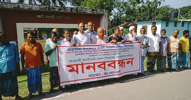 আওয়ামী লীগের ফ্যাসিস্ট ওই প্রধান শিক্ষককে স্থানীয় এলাকাবাসী পদত্যাগের দাবি তুলেন। অন্যথায় আরো কঠোর কর্মসূচি গ্রহণ করার হুমকি দিয়েছেন। উপবৃত্তির টাকা সহ স্কুলে উন্নয়ন বরাদ্দের অধিকাংশই বিল ভাউচার মাধ্যমে আত্মসাৎ করেছেন বলে মানববন্ধনে বক্তব্য দেন স্কুলের অভিভাবকগণ।