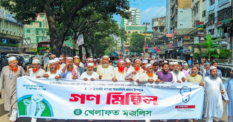 জুলাই জাতীয় সনদের আইনি ভিত্তি নিশ্চিতে অবিলম্বে জুলাই সনদ বাস্তবায়ন আদেশ জারি ও জাতীয় নির্বাচনের পূর্বেই গণভোট অনুষ্ঠান সহ ৬দফা দাবিতে প্রধান উপদেষ্টা বরাবর স্মারকলিপি প্রদান উপলক্ষে গণমিছিল আয়োজন করে খেলাফত মজলিস।