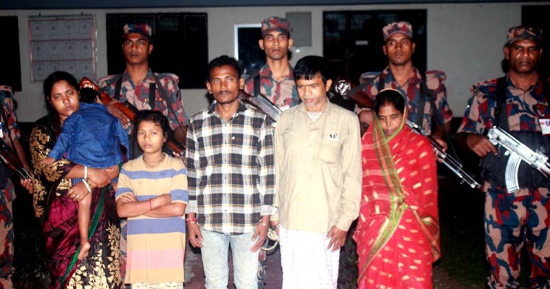 আটককৃতরা হলেন,ভারতের দক্ষিণ দিনাজপুর জেলার মারগ্রাম গ্রামের নেপাল বর্মন (২৯), বাংলাদেশি নাগরিক নওগাঁ জেলার মহাদেবপুর উপজেলার শালবাড়ী গ্রামের জলি রাণী (৩০) ও তার দুই মেয়ে তনুশ্রী রাণী (১০) ও রাজশ্রী রাণী (৩), পত্নীতলা উপজেলার বড়চাঁদপুর গ্রামের বিজন কুমার দাস (৫৫) ও তার স্ত্রী লিপি রাণী দাস (৪৭)।