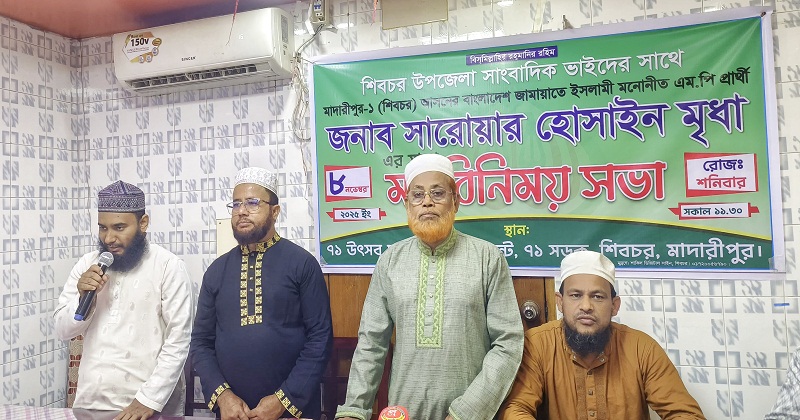 আসন্ন ত্রয়োদশ জাতীয় সংসদ নির্বাচনকে সামনে রেখে মাদারীপুর-১ (শিবচর) আসনে বাংলাদেশ জামায়াতে ইসলামীর মনোনীত প্রার্থী স্থানীয় সাংবাদিকদের সঙ্গে মতবিনিময় সভা করেছেন।
