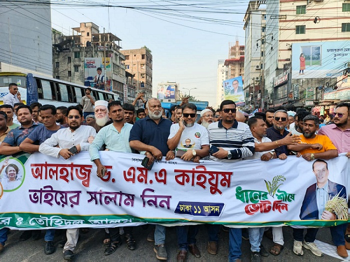 বিএনপির মনোনীত প্রার্থী ড. এম এ কাইয়ুমের নির্বাচনী শোডাউনে শনিবার বিকেলে ঢাকা-১১ আসন জুড়ে সৃষ্টি হয় জনস্রোত।