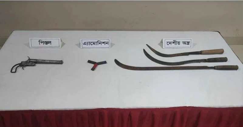 মেহেরপুরের গাংনী উপজেলার সাহারবাটি ইউনিয়নের, ভাটপাড়া গ্রাম থেকে পরিত্যক্ত অবস্থায় একটি ওয়ান-শুটার পিস্তল, ৩ রাউন্ড গুলি এবং ৩টি দেশীয় ধারালো অস্ত্র উদ্ধার করেছে সেনাবাহিনীর সদস্যরা। শুক্রবার রাতে সুনির্দিষ্ট তথ্যের ভিত্তিতে সেনাবাহিনীর একটি টহল দল এ অভিযান পরিচালনা করে।