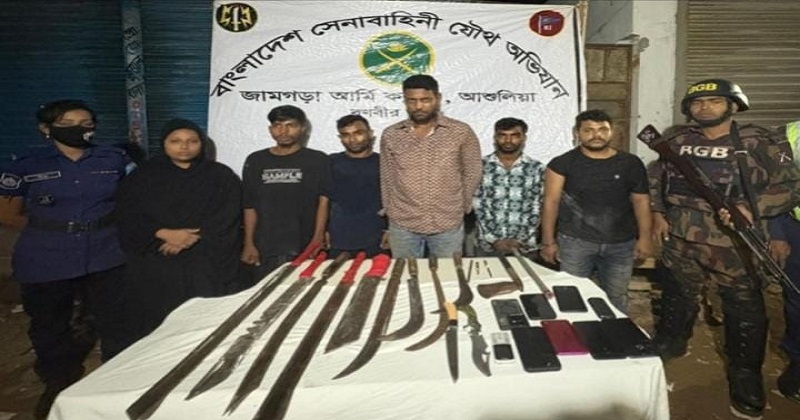 ঢাকার সাভারের আশুলিয়ায় রাতভর অভিযান চালিয়ে ছিনতাইকারী চক্রের ৬ সদস্যকে গ্রেপ্তার করেছে যৌথবাহিনী। এসময় তাদের কাছ থেকে চাপাতি, চাইনিজ কুড়াল, ধারালো ছুরি ও মোবাইল ফোন জব্দ করা হয়েছে।