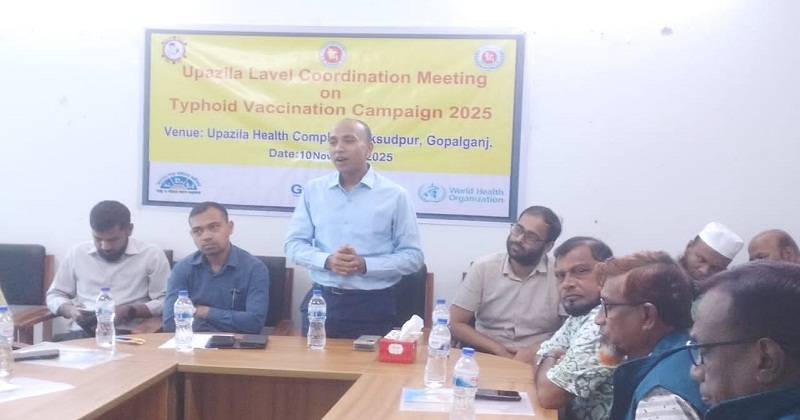 চলমান জাতীয় টাইফয়েড টিকা ক্যাম্পেইন–২০২৫ উপলক্ষে গোপালগঞ্জের মুকসুদপুরে এক সমন্বয় (কো-অর্ডিনেশন) সভা অনুষ্ঠিত হয়েছে।