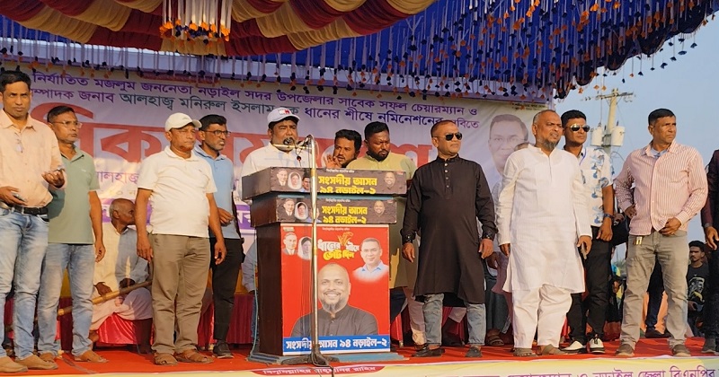 নড়াইল-২ আসনে বাংলাদেশ জাতীয়তাবাদী দল (বিএনপি) এর দলীয় প্রতীক ধানের শীষ এ আলহাজ্ব মোঃ মনিরুল ইসলামকে মনোনয়ন দেওয়ার দাবিতে এক নাগরিক সমাবেশ অনুষ্ঠিত হয়েছে। জেলা বিএনপির সাধারণ সম্পাদক ও নড়াইল সদর উপজেলার সাবেক চেয়ারম্যান মনিরুল ইসলামের পক্ষে সর্বস্তরের জনগণের ব্যানারে সোমবার (১০ নভেম্বর) বিকেলে নড়াইলের মালিরবাগ এলাকায় এই সমাবেশ অনুষ্ঠিত হয়