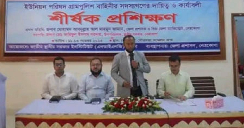 নেত্রকোনা জেলা প্রশাসনের উদ্যোগে মঙ্গলবার সকালে পৌরসভার সম্মেলন কক্ষে জাতীয় স্থানীয় সরকার ইনস্টিটিউটের আয়োজনে ইউনিয়ন পরিষদ গ্রাম-পুলিশ বাহিনীর সদস্যগণের দায়িত্ব ও কার্যাবলী শীর্ষক ৩ দিনব্যাপী প্রশিক্ষণ উদ্বোধন করা হয়েছে।