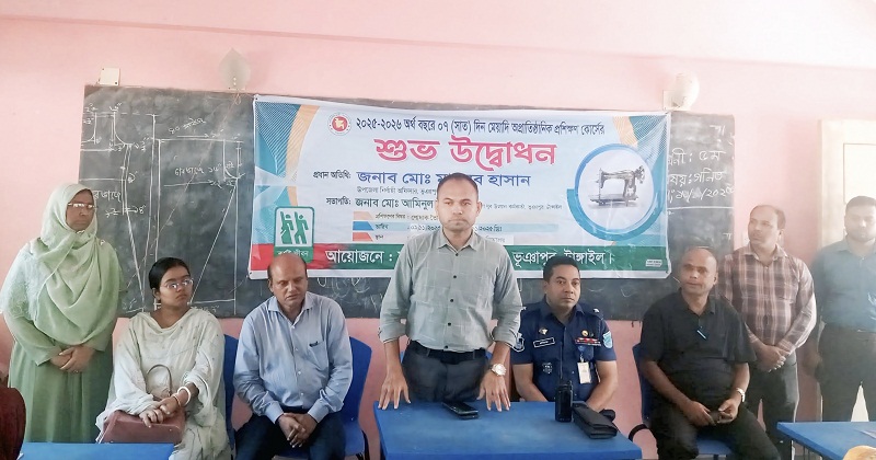 টাঙ্গাইলের ভূঞাপুরে (২০২৫-২০২৬) অর্থ বছরে ৭ দিন মেয়াদি অপ্রাতিষ্ঠানিক সেলাই প্রশিক্ষণের উদ্বোধন করা হয়েছে।
