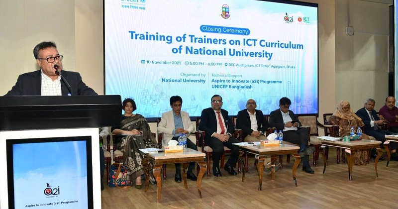 রাজধানীর আগারগাঁওয়ে আইসিটি ভবনে বাংলাদেশ কম্পিউটার কাউন্সিল অডিটোরিয়ামে জাতীয় বিশ্ববিদ্যালয় আয়োজিত আইসিটি বিষয়ে প্রশিক্ষণপ্রাপ্ত শিক্ষকদের কোর ট্রেইনার প্রশিক্ষণের সমাপনি অনুষ্ঠানে প্রধান অতিথি হিসেবে উপস্থিত ছিলেন প্রধান উপদেষ্টার ডাক, টেলিযোগাযোগ ও প্রযুক্তি বিষয়ক মন্ত্রণালয়ের বিশেষ সহকারী ফয়েজ আহমদ তৈয়্যব।