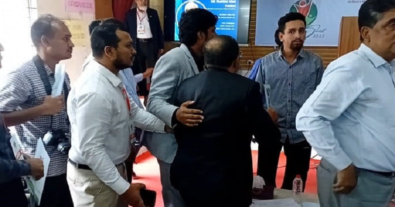 বিকেএমইএ সভাপতি মোহাম্মদ হাতেম বলেন, ‘অনুষ্ঠানের শেষ পর্যায়ে তোলারাম কলেজের ছাত্রদল নেতাসহ বেশ কয়েকজন এসে আমাকে আওয়ামী লীগের দোসর আখ্যা দিয়ে ঘটনাটি ঘটিয়েছে। এমনিতে অনুষ্ঠান একেবারে শেষ পর্যায়ে ছিল। কিছুক্ষণের মধ্যে আমি সেখান থেকে চলে আসতাম। এর মধ্যে ঘটনাটি ঘটেছে। কোনও একটি মহল ষড়যন্ত্র করে ঘটনাটি ঘটিয়েছে।’