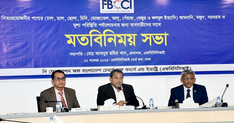 চাল, ডাল, ভোজ্যতেল, পেঁয়াজ, খেজুরসহ অন্যান্য নিত্যপ্রয়োজনীয় পণ্যের মূল্য ও সরবরাহ স্বাভাবিক রাখতে সংশ্লিষ্ট ব্যবসায়ীদের পাশাপাশি সকল চেম্বার এবং অ্যাসোসিয়েশনকে দায়িত্বশীল থাকার আহ্বান জানিয়েছেন দি ফেডারেশন অব বাংলাদেশ চেম্বার্স অব কমার্স এন্ড ইন্ডাস্ট্রি (এফবিসিসিআই) এর প্রশাসক মোঃ আবদুর রহিম খান।