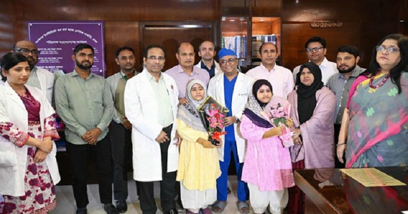 আজ বুধবার সকালে ইনস্টিটিউটের পরিচালকের কার্যালয়ে দুই শিশুকে বিদায় জানান হাসপাতালের চিকিৎসক, নার্স ও কর্মচারীরা।