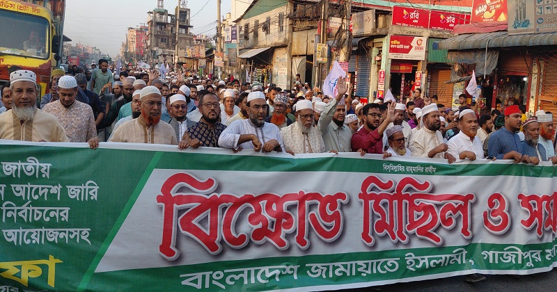 জুলাই জাতীয় সনদ বাস্তবায়ন আদেশ জারি ও জাতীয় নির্বাচনের পূর্বে গণভোট আয়োজনসহ পাঁচ দফা দাবিতে গাজীপুরে বিক্ষোভমিছিল ও সমাবেশ অনুষ্ঠিত হয়েছে। শুক্রবার বিকাল সাড়ে চারটায় ভোগড়া বাইপাস চৌরাস্তা থেকে ঢাকামুখী সড়কে বাংলাদেশ জামায়াতে ইসলামী, গাজীপুর মহানগরের উদ্যোগে এ কর্মসূচি পালিত হয়।