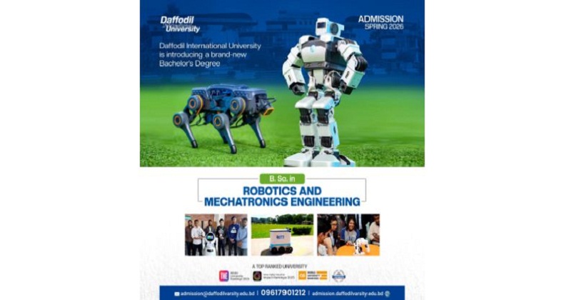 ড্যাফোডিল ইন্টারন্যাশনাল ইউনিভার্সিটি প্রকৌশল অনুষদের অধীনে ডিপার্টমেন্ট অব রোবোটিক্স অ্যান্ড মেকাট্রনিক্স ইঞ্জিনিয়ারিং (আরএমই) নামে নতুন বিভাগ চালু করেছে এবং স্প্রিং ২০২৬ সেমিস্টার থেকে বিশ্ববিদ্যালয়ে বহুল প্রতীক্ষিত ব্যাচেলর অব সায়েন্স ইন রোবোটিক্স এন্ড ম্যাকাট্রনিক্স ইঞ্জিনিয়ারিং প্রোগ্রাম চালু হচ্ছে। ব্যাচেলর অব সায়েন্স ইন রোবোটিক্স এন্ড ম্যাকাট্রনিক্স ইঞ্জিনিয়ারিং- একটি ভবিষ্যৎমুখী প্রোগ্রাম যা বাংলাদেশকে বিশ্ব মঞ্চে ইনোভেশন, অটোমেশন এবং ইন্টেলিজেন্ট সিস্টেম এর কেন্দ্র হিসেবে প্রতিষ্ঠিত করার জন্য ডিজাইন করা হয়েছে।