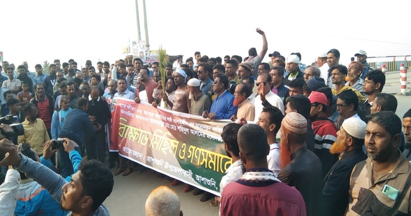 শনিবার বিকালে আশাশুনি সদরের মরিচ্চাপ ব্রীজের দক্ষিণ ধারে বিএনপি নেতা আবুহেনা মোস্তফা কামালের সভাপতিত্ব বক্তব্য রাখেন বিএনপি নেতা আসিফুর রহমান তুহিন, খায়রুল আহসান, ইউপি চেয়ারম্যান জাঙ্গীর আলম, খোরশেদ আলম, শাহরিয়ারজ্জামান, আব্দুস সালাম বাচ্চু, আব্দুর রাকিব, জুলফিকার আলী জুলি, আব্দুল ওয়াহাব, খালিদুজ্জামান টিপু, রুহুল আমিন, হাফিজুল ইসলাম, হাবিবুল্লাহ হাবিল, রাফসান জানি রাসেল, আরাফাত হোসেন পলাশ, সবুজ প্রমূখ।