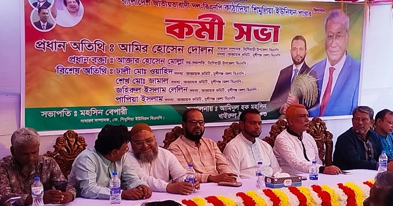 মুন্সীগঞ্জ টঙ্গিবাড়ী উপজেলার কাঠাদিয়া-শিমুলিয়া ইউনিয়নের বিএনপি কর্মীসভা শনিবার বিকালে আলদী বাজারে অনুষ্ঠিত হয়েছে।