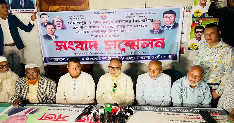 জামালপুর-২ ইসলামপুর আসনে বিএনপির মনোনীত প্রার্থীর বিরুদ্ধে বিভিন্ন গণমাধ্যমে প্রকাশিত সাক্ষাৎকারকে বিকৃত ও উদ্দেশ্য প্রণোদিত আখ্যা দিয়ে প্রতিবাদ জানিয়েছেন ইসলামপুর উপজেলা বিএনপি। শনিবার রাত ৮টায় উপজেলা বিএনপির দলীয় কার্যালয়ে জরুরি সংবাদ সম্মেলন অনুষ্ঠিত হয়।
