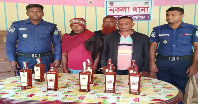 নকলা থানার ভারপ্রাপ্ত কর্মকর্তা (ওসি) মুহাম্মদ ফিরোজ হোসেন জানান, গোপন সংবাদের ভিত্তিতে শনিবার রাতে ধনাকুশা পুরাতন বাজার এলাকায় গোপন সংবাদের ভিত্তিতে বিশেষ অভিযান চালিয়ে নালিতাবাড়ী দিক থেকে নকলার দিকে আসা একটি মোটরসাইকেলকে সন্দেহ হলে গতিরোধ করা হয়। পরে মোটরসাইকেলের চালক ও আরোহীর হেফাজতে থাকা ৯ বোতল ভারতীয় মদসহ মোটরসাইকেলটি জব্দ এবং তাদেরকে আটক করা হয়। রবিবার (১৬ নভেম্বর) মোটরসাইকেলের চালক ও আরোহীর বিরুদ্ধে থানায় মামলা দিয়ে আদালতের মাধ্যমে তাদেরকে জেল হাজতে পাঠানো হয়েছে।