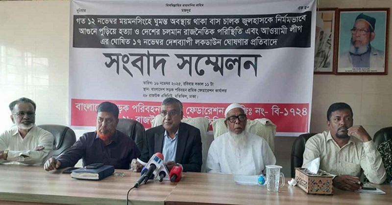 লকডাউন চলাকালে প্রায় ২০টি পরিবহনে অগ্নিসন্ত্রাস ও নাশকতার ঘটনা ঘটে এবং ময়মনসিংহে একটি বাসে আগুন দিয়ে শ্রমিক জুলহাস ড্রাইভারকে হত্যা করা হয় বলে অভিযোগ করেন তিনি।