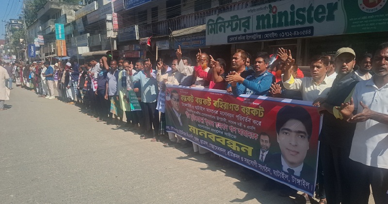 মানববন্ধনে বক্তারা বলেন, টাঙ্গাইল-৩ আসন থেকে কেন্দ্রীয় বিএনপি ওবায়দুল হক নাসিরকে মনোনয়ন দেয়। কিন্তু নাসিরের বাসা ঘাটাইলে নয়। ঘাটাইলের সাবেক এমপি ও মন্ত্রী লুৎফর রহমান খান আজাদ দীর্ঘদিন ধরে দলীয় নেতা কর্মীদের সাথে কাজ করে যাচ্ছেন৷ কিন্তু আজাদকে মনোনয়ন না দিয়ে নাসিরকে দেয়া হয়েছে। অতিদ্রুতই নাসিরের মনোনয়ন বাতিল করে আজাদকে দেয়ার দাবি করছি। তা না হলে কঠোর আন্দোলন গড়ে তোলা হবে।