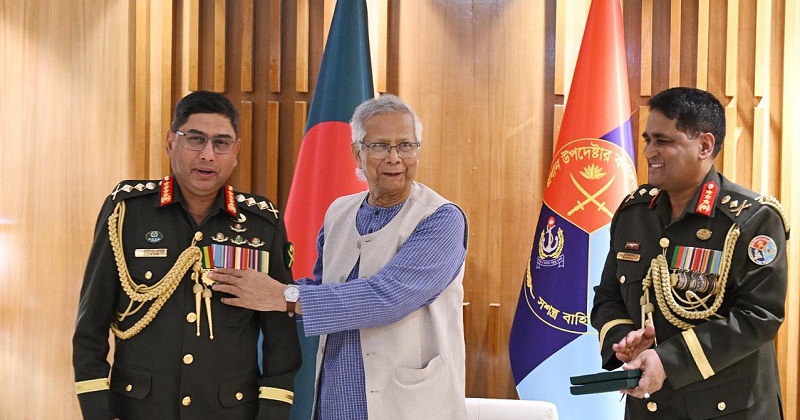 সশস্ত্র বাহিনী দিবস উপলক্ষে সেনাবাহিনী প্রধান জেনারেল ওয়াকার-উজ-জামানকে ‘সেনাবাহিনী পদক’ দিয়েছেন প্রধান উপদেষ্টা অধ্যাপক মুহাম্মদ ইউনূস।