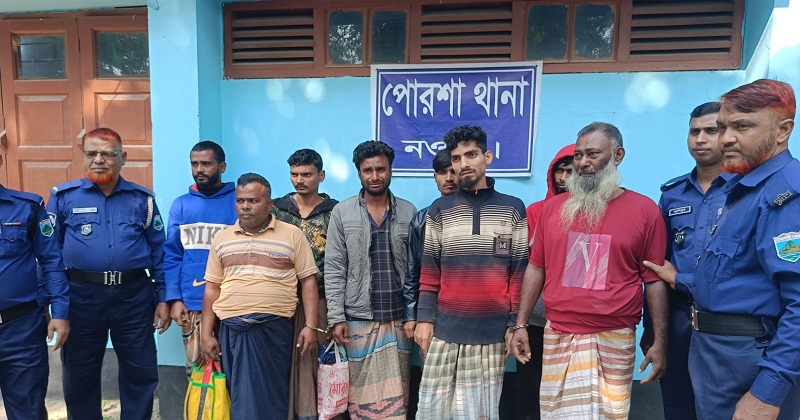 পোরশা থানা অফিসার ইনচার্জ সাইফুল ইসলাম ঘটনার সত্যতা নিশ্চিত করে জানান, পুলিশের বিশেষ অভিযানের অংশ হিসাবে অভিযান পরিচালনা করে তাদের আটক করা হয়েছে এবং আটকৃত ৫ জন ডাকাত সদস্য ও ৩ জন মাদক ব্যবসায়ীকে শুক্রবার জেলহাজতে প্রেরণ করা হয়েছে।