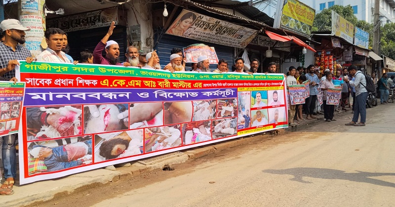 গাজীপুর সদর উপজেলার মনিপুর সরকারি প্রাথমিক বিদ্যালয়ের সাবেক প্রধান শিক্ষক এ.কে. এম আঃ বারীর দুই ছেলের ওপর সন্ত্রাসী হামলায় দোষীদের গ্রেপ্তার ও বিচার দাবিতে মানববন্ধন ও বিক্ষোভ মিছিল করেছে এলাকাবাসী।
