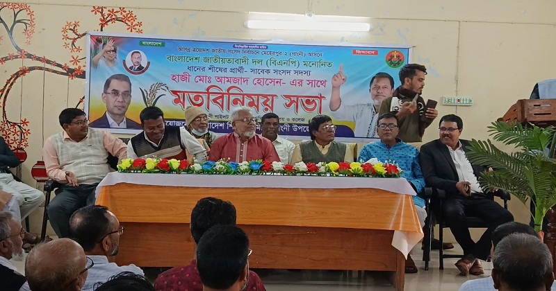শিক্ষার মানোন্নয়ন এবং শিক্ষক সমাজের নায্য দাবি আদায়ের লক্ষ্যে মেহেরপুর ২ আসনের বিএনপি মনোনীত প্রার্থী আমজাদ হোসেনের সাথে মতবিনিময় করেছেন শিক্ষক নেতৃবৃন্দ।