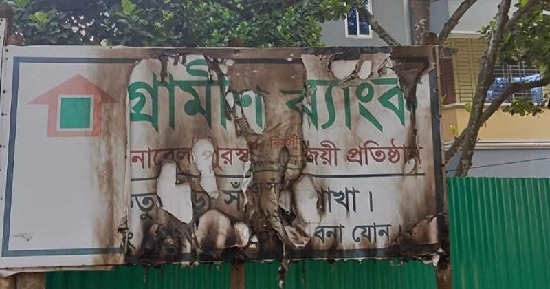 আগুন দেওয়ার একটি ভিডিও সামাজিক যোগাযোগ মাধ্যমে ছড়িয়ে পড়েছে। ছড়িয়ে পড়া ভিডিওতে দেখা যায়, কয়েকজন সাঁথিয়া উপজেলার গ্রামীণ ব্যাংকের ক্ষেতুপাড়া শাখার সাইনবোর্ডে পেট্রোল ঢেলে আগুন ধরিয়ে দিচ্ছে। মুহূর্তেই আগুন পুরো সাইনবোর্ডে ছড়িয়ে পড়ে এবং পুড়ে যায়। এসময় ‘জয় বাংলা জয় বঙ্গবন্ধু’ স্লোগান দিতেও শোনা যায়।