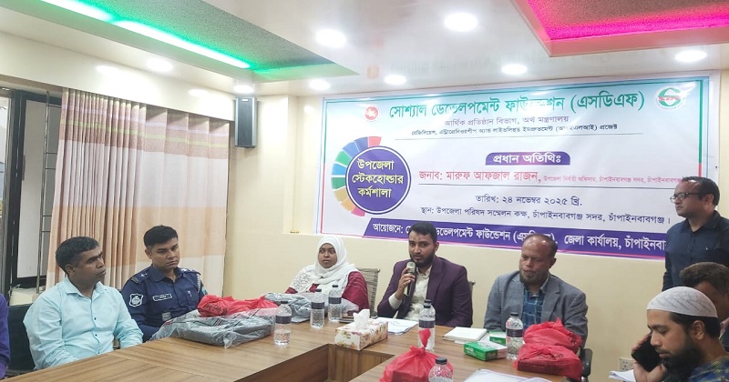 সোশ্যাল ডেভেলপমেন্ট ফাউন্ডেশন (এসডিএফ) পরিচালিত ‘রেজিলিয়েন্স, এন্ট্রাপ্রেনিওরশীপ অ্যান্ড লাইভলিহুড ইমপ্রুভমেন্ট (আরইএলআই)’ প্রকল্পের আওতায় চাঁপাইনবাবগঞ্জ সদর উপজেলায় স্টেকহোল্ডার কর্মশালা অনুষ্ঠিত হয়েছে।