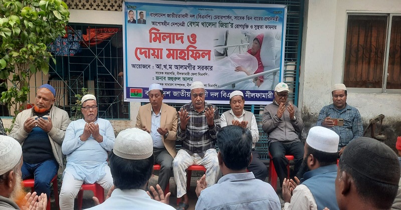 বিএনপির চেয়ারপারসন বেগম খালেদা জিয়ার রোগমুক্তি ও সুস্থতা কামনায় নীলফামারীতে মিলাদ ও দোয়া মাহফিল অনুষ্ঠিত হয়েছে।