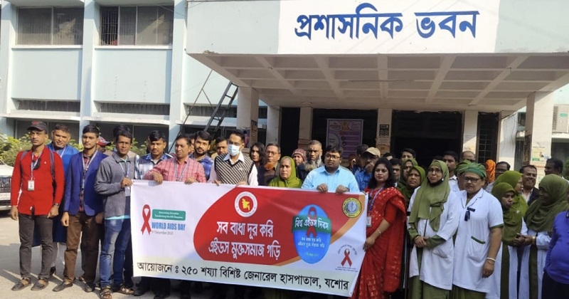 বিশ্ব এইডস দিবস-২০২৫ উপলক্ষে যশোর ২৫০ শয্যা বিশিষ্ট জেনারেল হাসপাতালে বর্ণাঢ্য র্যালি অনুষ্ঠিত হয়েছে।