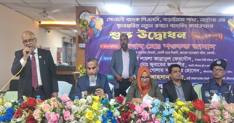 সোনালী ব্যাংক বড়াইগ্রাম শাখার কার্যক্রম এখন নতুন ভবনে। মঙ্গলবার প্রধান অতিথি হিসেবে সোনালী ব্যাংক রাজশাহী যোনের মহাব্যবস্থাপক মোঃ শওকত জামান-এর উদ্বোধন করেন।