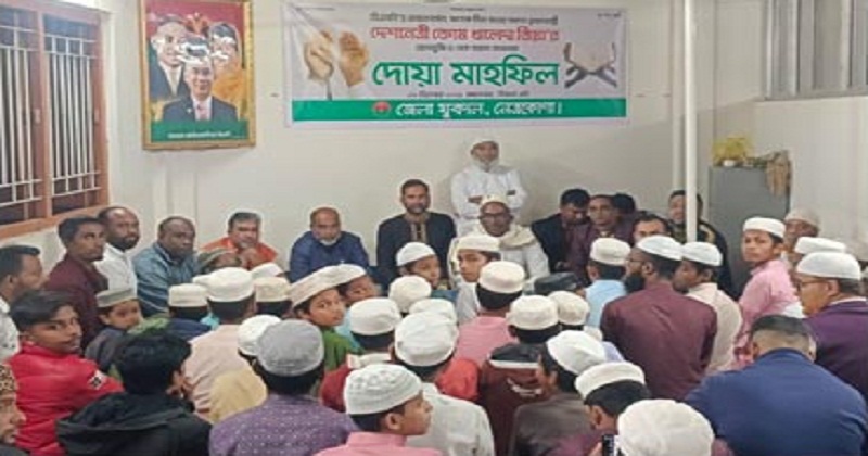 বিএনপির চেয়ারপার্সন তিনবারের সাবেক প্রধানমন্ত্রী দেশনেত্রী বেগম খালেদা জিয়ার রোগমুক্তি ও নেক হায়াত কামনায় নেত্রকোনায় দোয়া মাহফিল অনুষ্ঠিত হয়েছে। মঙ্গলবার বাদ আছর জেলা যুবদলের উদ্যোগে শহরের চকপাড়ায় এই দোয়া মাহফিল অনুষ্ঠিত হয়।