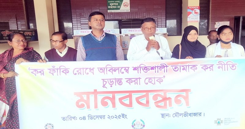 শক্তিশালী তামাক কর নীতির দাবিতে শ্রীমঙ্গলে মানববন্ধন