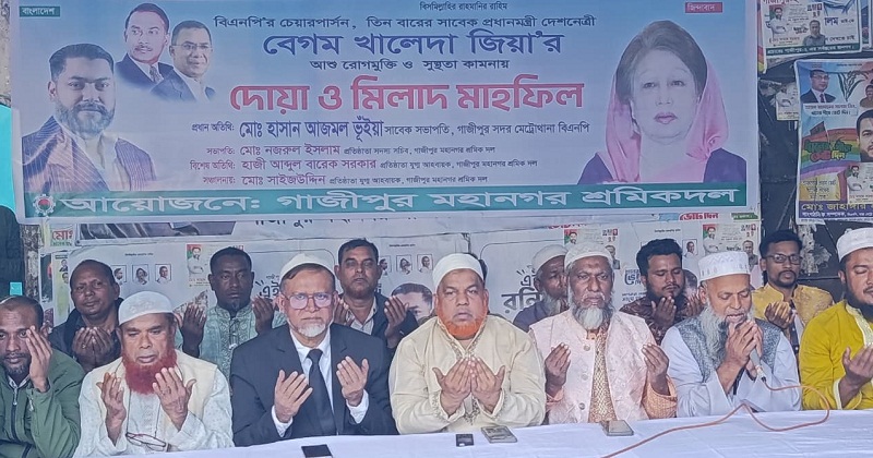 বৃহস্পতিবার বিকেলে বিএনপির গাজীপুর জেলা কার্যালয়ে বিএনপির চেয়ারপার্সন বেগম খালেদা জিয়ার সুস্থতা কামনা করে গাজীপুর মহানগর শ্রমিক দলের দোয়া অনুষ্ঠিত হয়।
