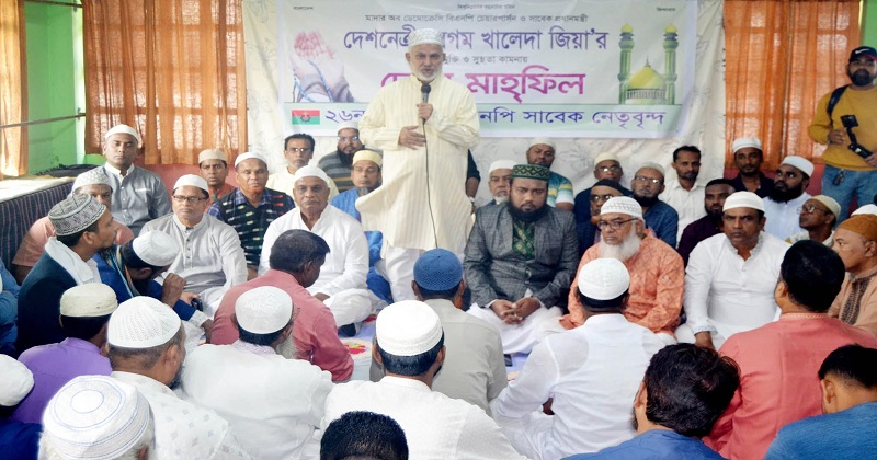 গতকাল বৃহস্পতিবার দুপুর ২টায় ২৬নং ওয়ার্ডের পশ্চিম বানিয়াখামার দারুল কুরআন মাদ্রাসায় বিএনপি’র চেয়ারপারসন, সাবেক প্রধানমন্ত্রী বেগম খালেদা জিয়ার আশু রোগমুক্তি ও সুস্থতা কামনায় দোয়া মাহফিলে প্রধান অতিথি ছিলেন নজরুল ইসলাম মঞ্জু। দোয়া পরিচালনা করেন মাদ্রাসার প্রধান শিক্ষক মাওলানা ফজলুর রহমান। দোয়া শেষে ছাত্রদের মাঝে খাবার বিতরণ করা হয়।