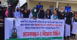 মর্গে মৃত তরুণীকে ধর্ষণের প্রতিবাদে হালুয়াঘাটে মানববন্ধন